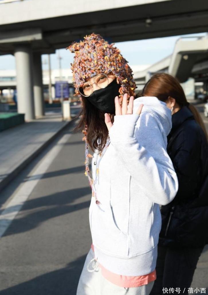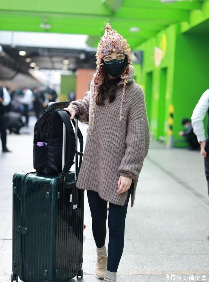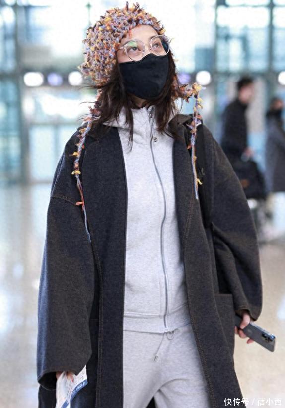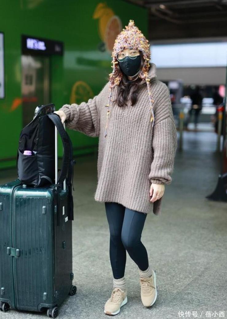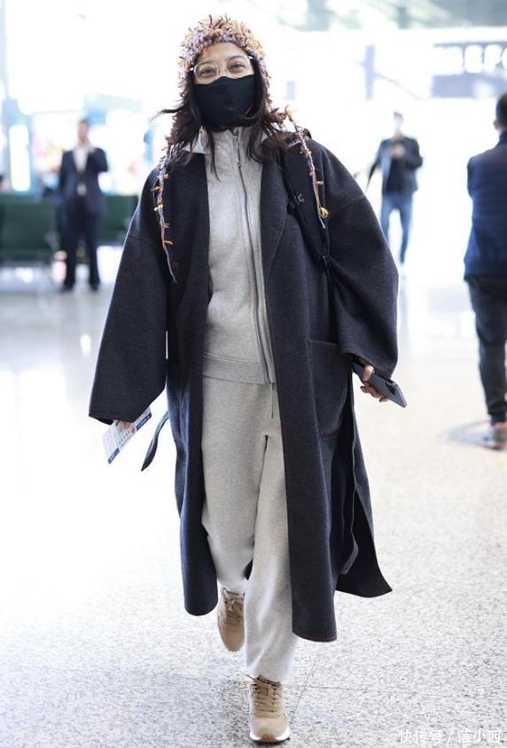 50岁梅婷又不走寻常路,穿大衣+运动套装走机场,还好气质撑得住