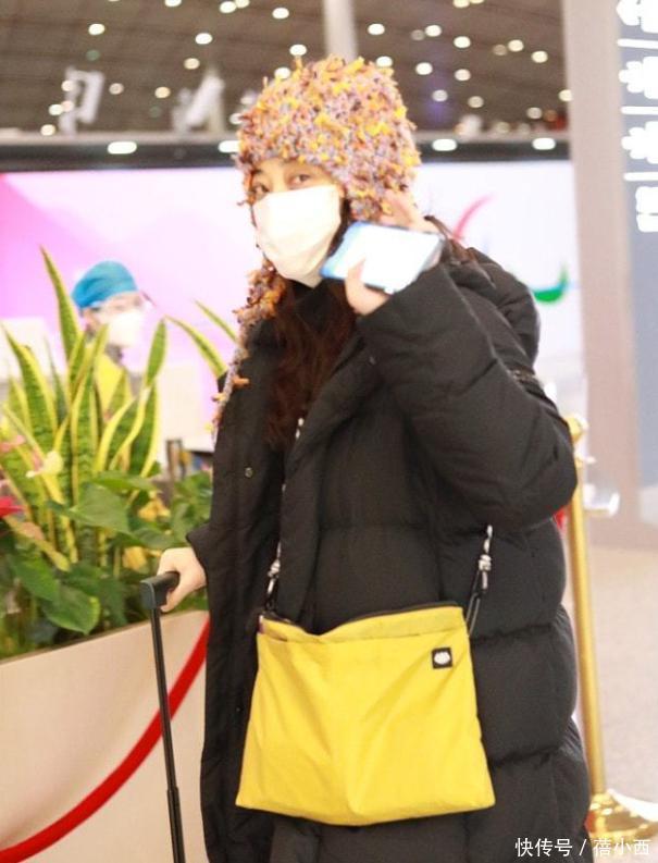 此外,搭配一顶撞色的毛线帽,一个黄色的斜挎包,更是可以为整体造型增添一抹时尚亮点。在寒冷的冬季,这样的装扮既实用又不失时尚感,非常适合日常出行或是赶飞机。
